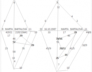 Pořád jsem hledala odpověď na otázku, proč se to stalo, proč se to muselo stát. Když se mi dostala do ruky kniha Camily Karolinss, Jméno je váš osud, začala jsem taky horlivě počítat vzorce jména, nejdřív samozřejmě u mé dcery. Připadalo mi, že její vzorec jména přesně odpovídá tomu, co je popsaná jako teorie v knize. Počítala jsem tedy dále, ale čím víc vzorců jsem počítala, tím víc jsem nabyla dojmu, že něco nesedí. Není možné přece karmu odbýt a zrušit změnou jména, ani změnou některého písmenka ve jménu.