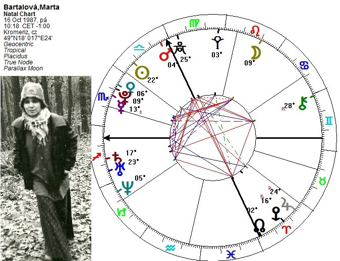 Moje dcera Marta Bartalová narodila se 16.10.1987, kdy jsem měla astrologicky velice obtížné období, Saturnskou a Uranskou opozici. Tragicky nás opustila 31.5.2005 kolem půlnoci.